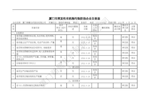 2022年第三季度揮發(fā)性有機(jī)物整治企業(yè)自查表